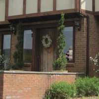 Sherwin-Williams Duration (Flat Finish) on body Flood SWF-Solid Stain (Traditional Oxford Brown) on cedar trim