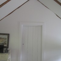 WhiteBenjamin Moore Regal Classic (Flat Finish) on walls Waterbourne Satin Impervo on trim